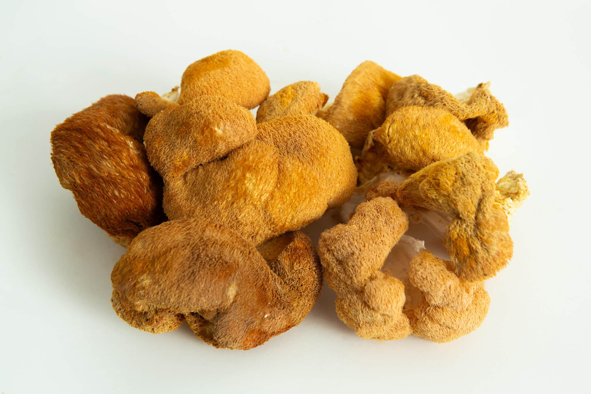 Whole dried Lionโs Mane mushrooms retain their fibrous texture and umami flavour, ideal for culinary uses that mimic meat or seafood.