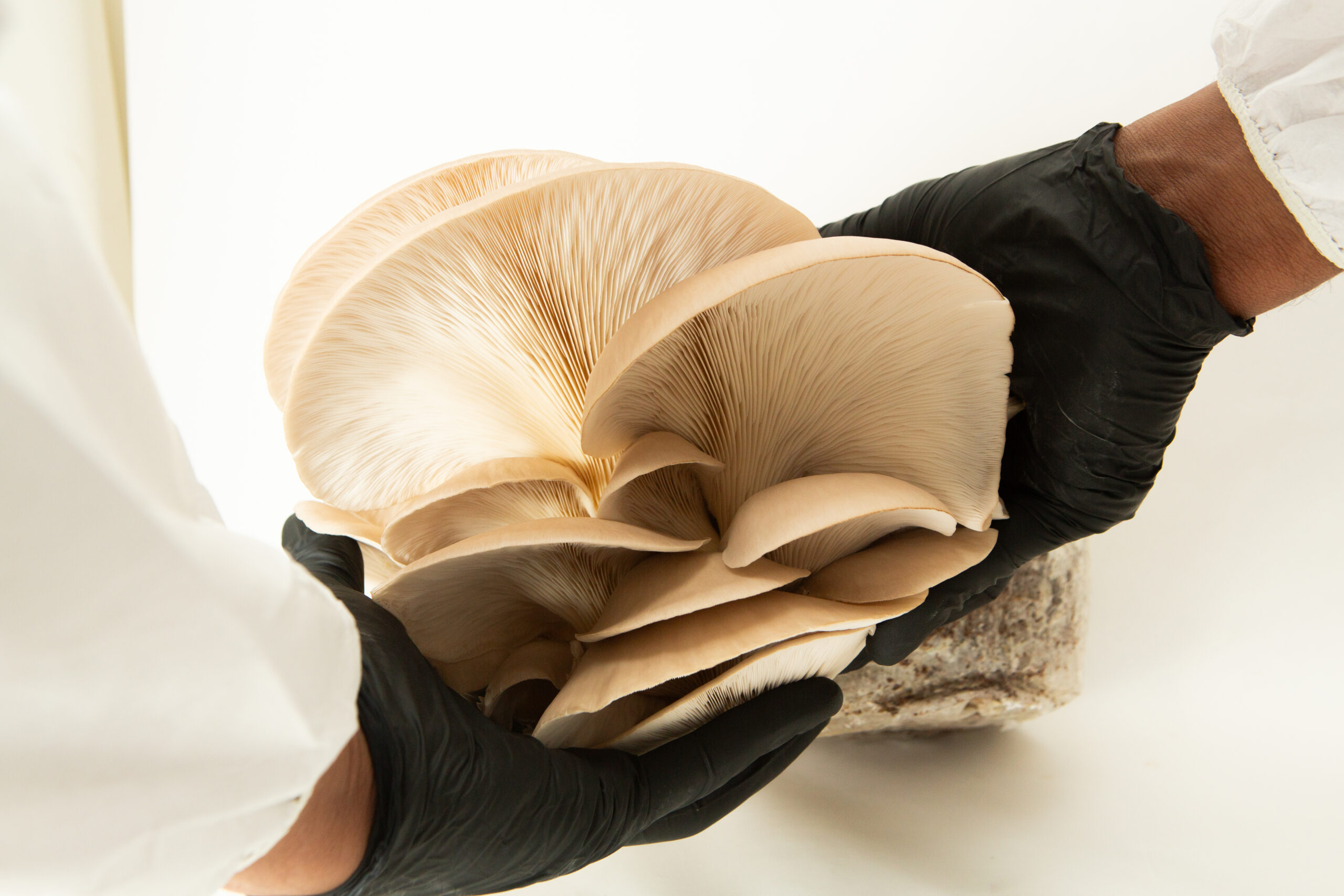 Princess of Pearl Oysterย (Pleurotus ostreatus)ย Gourmet. Side fruiting. Fruiting temp: 12ยฐ-29ยฐC