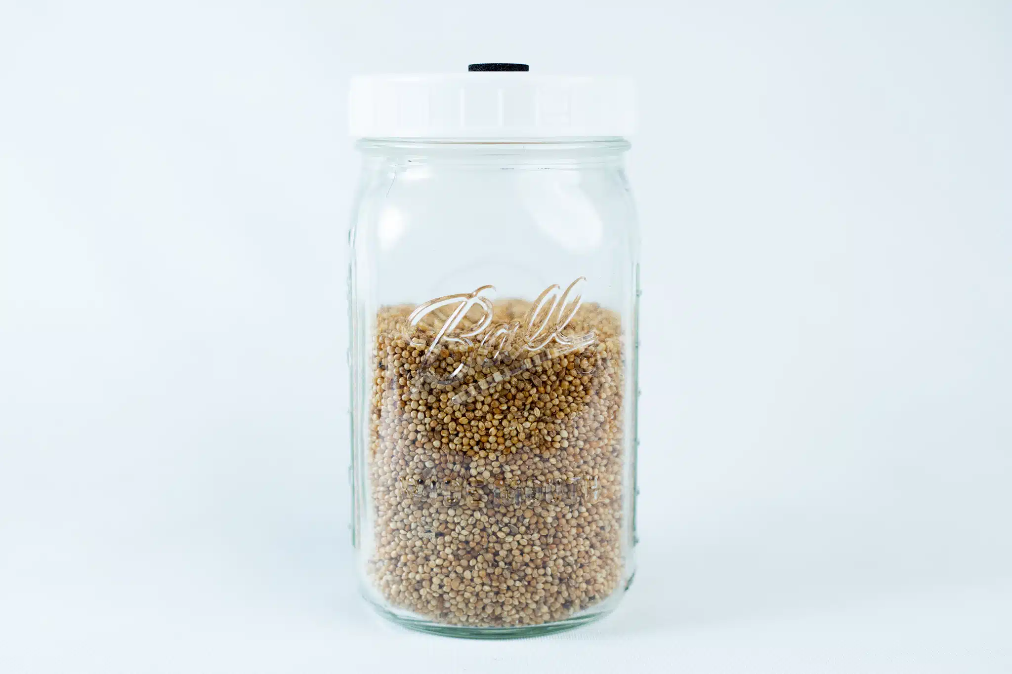 Genuine Ball jars 1 Liter, Filled 60% with a grain of your choice (Organic Rye berries or Millet). Sterilized to field capacity and ready to use, Gypsum and Calcium Carbonate were added as supplements.
